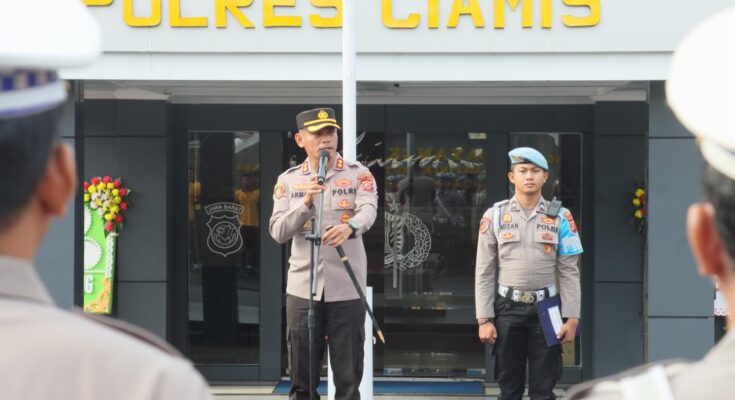 Ciamis – Upaya menjamin keamanan dan keselamatan warga Kab. Ciamis dalam berlalulintas, Kapolres Ciamis AKBP Akmal, S.H., S.I.K., M.H., saat memimpin apel pagi di halaman Markas Komando Polres Ciamis, Jumat (24/1/2025). Dalam arahannya, beliau menegaskan pentingnya penegakan hukum di wilayah hukum Polres Ciamis, khususnya dalam menangani pelanggaran lalu lintas yang menjadi perhatian serius.