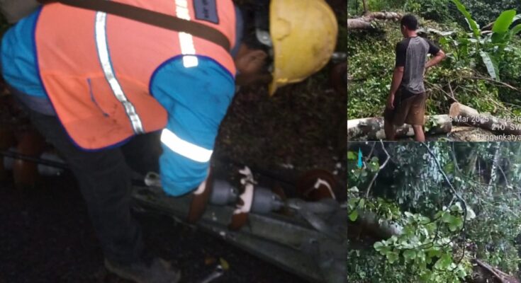 “Di lokasi titik gangguan, petugas langsung melakukan perbaikan tiang roboh dimana membutuhkan penggantian material jaringan listrik yang rusak,” jelas Reza.