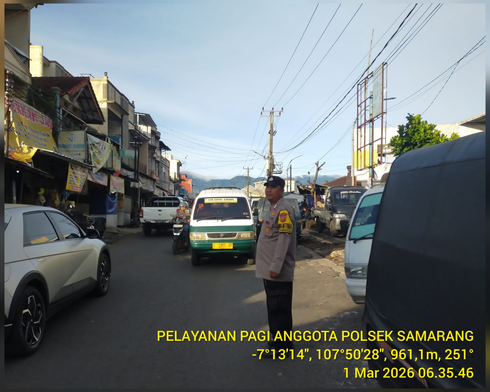 Jejak-kriminal.com-Garut Minggu 01 Febuari 2026. Polsek Samarang Polres Garut menggelar kegiatan Pengaturan lalu lintas rawan pagi di wilayah hukum Polsek Samarang, tepat nya di depan pasar wisata Samarang, acara tersebut di mulai dari pukul 06.30 WIB s.d selesai.