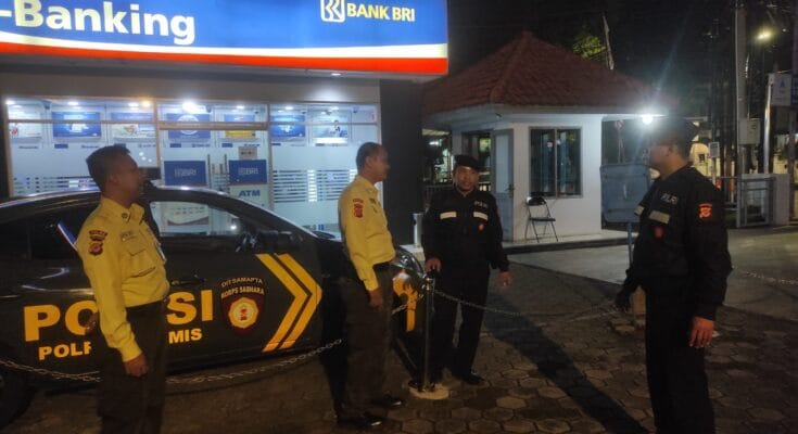 CIAMIS ~ Personel Satuan Samapta Polres Ciamis Polda Jabar melaksanakan koordinasi sekaligus pembinaan ke satuan keamanan (Satpam) perbankan. Pembinaan ini dilaksanakan ke Anggota Satpam Bank BRI Ciamis, Kecamatan Ciamis, Kabupaten Ciamis, Jawa Barat, Minggu (17/11/2024), dini hari.