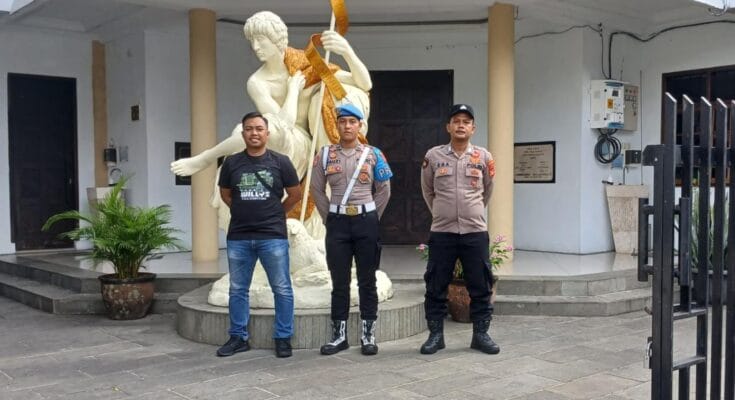 CIAMIS ~ Jajaran personel Polres Ciamis Polda Jawa Barat melaksanakan pengamanan kegiatan ibadah umat kristiani di wilayah Kabupaten Ciamis. Pengamanan ini dilaksanakan di sekitar Gereja Katolik Santo Yohanes Pembabtis Ciamis, Jl. Pemuda No.56-58, Ciamis, Kecamatan Ciamis, Kabupaten Ciamis, Jawa Barat, Minggu (1/12/2024)