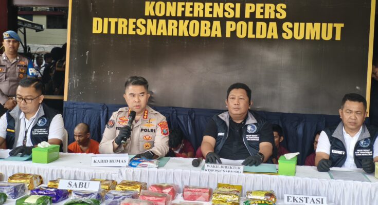Dalam konferensi pers yang digelar di Direktorat Resnarkoba Polda Sumut pada Kamis siang (11/09/2025), turut hadir Kabid Humas Polda Sumut Kombes Pol Dr. Ferry Walintukan, S.I.K., S.H., M.H., Wadir Resnarkoba AKBP Diari Astetika, S.I.K., serta para Kasubdit Ditresnarkoba.