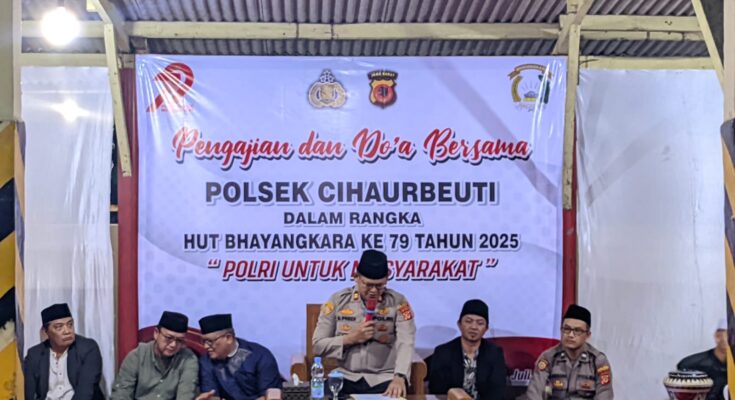 CIAMIS ~ Polsek Cihaurbeuti Polres Ciamis Polda Jabar mengadakan acara doa bersama sebagai ungkapan rasa syukur di Hari Bhayangkara ke-79 Tahun 2025 dan kenaikan pangkat sejumlah personel Polri. Acara ini berlangsung di Makpolsek Cihaurbeuti, Jalan Raya Ciamis-Tasikmalaya, Kecamatan Cihaurbeuti, Kabupaten Ciamis, Jawa Barat, Jumat, 4 Juli 2025, malam.