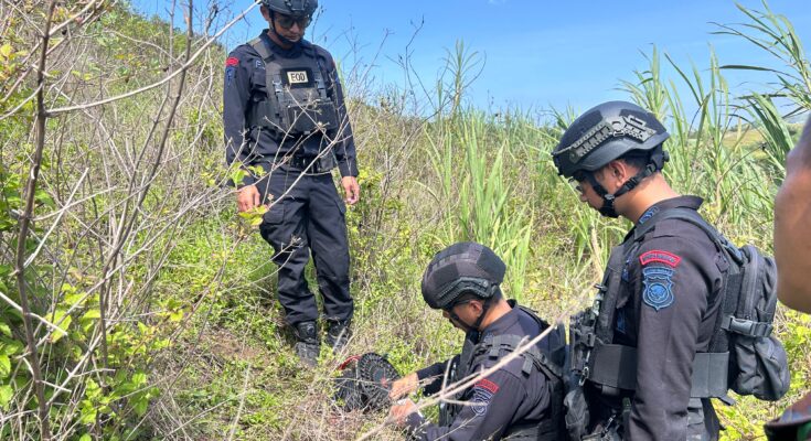Garut | Unit Jibom Detasemen Jihandak Sat Brimob Polda Jabar melakukan pemusnahan mortir atau disposal di Blok Cibujal Desa Paas Kecamatan Pameungpeuk Garut. Minggu (7/9/2025).
