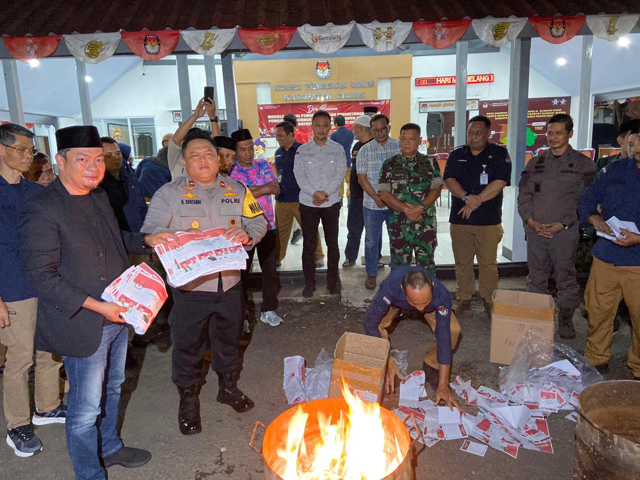 Pemusnahan ini dilakukan dengan cara dibakar. Dimana ini turut disaksikan oleh sejumlah unsur Forkopimda Kabupaten Ciamis, perwakilan Parpol hingga stakeholder terkait guna mencegah terjadinya kecurangan dalam proses Pemungutan dan Perhitungan Pilkada Serentak pada 27 November 2024.