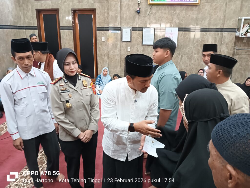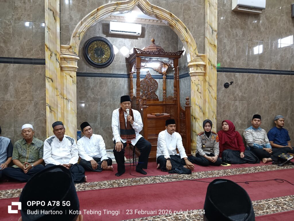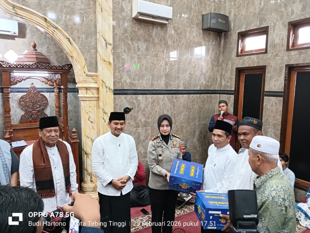 Walikota Tebing Tinggi H. Iman Irdian Saragih dan Kapolres Tebing Tinggi AKBP Rina Frillya, S.I.K beserta rombongan, adakan Safari Ramadhan 1447 H berkunjung bersama ke Masjid “TAFAKUR” Jln. Sei Padang Lk. 4 Kel. Durian Kec. Bajenis di hari ke 5 Ramadhan 1447 H, Senin (23/02/2026).