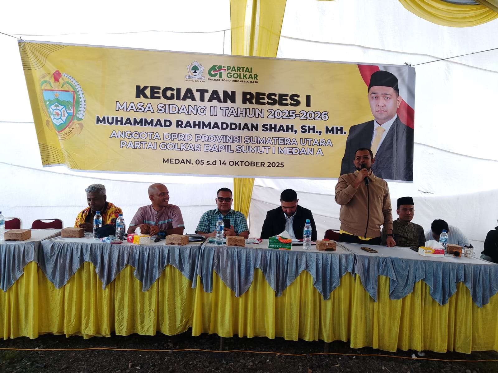 Medan – Anggota DPRD Provinsi Sumatera Utara dari Fraksi Partai Golkar, Muhammad Rahmaddian Shah, SH., MH., melaksanakan Kegiatan Reses I Masa Sidang II Tahun 2025–2026 di Daerah Pemilihan (Dapil) Sumut I Medan A, yang berlangsung pada 5 hingga 14 Oktober 2025.